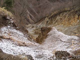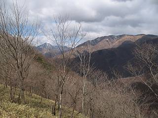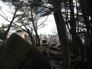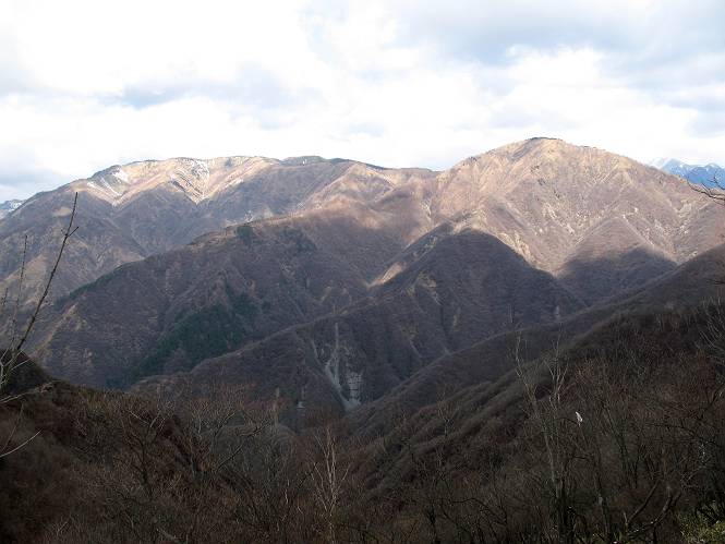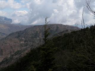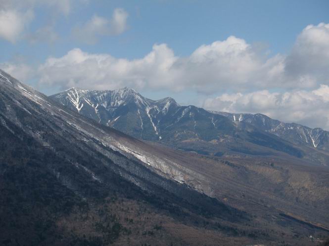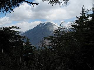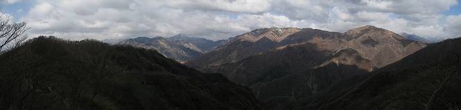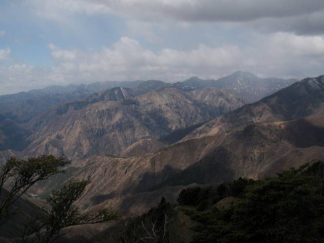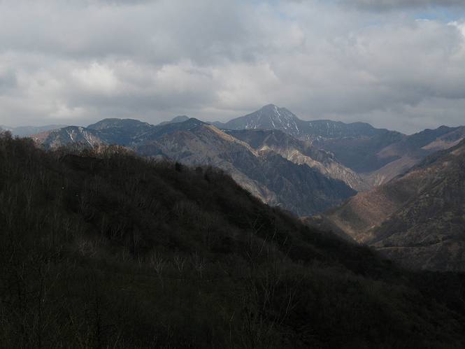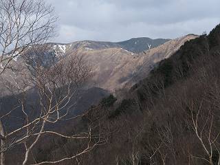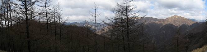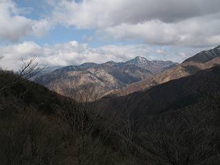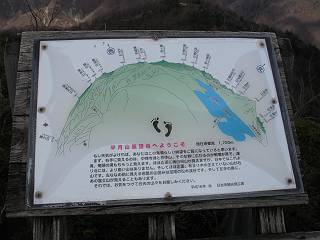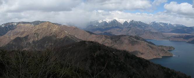 | 足尾町神子内P〜赤倉山〜神子内林道出合(ページTOPへ) 半月山〜細尾峠〜足尾町神子内P(その3へ) コース 概略図はこちら 神子内林道出合→林道終点→半月山駐車場尾根取付き点F→半月山駐車場G→半月山展望台H→半月山 林道を進みながら眺望を堪能する、辿ってきた赤倉山からの山並、皇海山、大平山、黒桧岳、社山。8:57林道終点、ここから笹道を辿り、少しガレた斜面を下り、P1504を東に巻いて進み、尾根道に出ると半月山と半月山駐車場が見える、もう近い。間もなく、駐車場から南に伸びる尾根に接近、尾根目指して這い上がり、駐車場に着く、9:32-9:43小休止。 林道に出る 林道正面に半月山 林道から辿ってきた赤倉山からの山並、皇海山、大平山、黒桧岳、社山 大平山、黒桧岳、社山 皇海山 辿ってきた赤倉山からの山並、皇海山、大平山、黒桧岳、社山 林道終点 林道終点、ここからも延長工事のテープが(?) 終点付近、南側が大きく崩れている 笹道を進む P1504 左奥に社山 P1504の東側を巻く 北側で尾根筋に出ると半月山と駐車場が見える 同所から皇海山、大平山 皇海山 半月山と駐車場、この辺から駐車場目指して尾根へ 笹を漕いで半月山駐車場の出る、正面柵 誰もいない半月山駐車場、雪がチラホラ舞っているが大したことはないだろう。連続する霜柱の道、一部凍結した雪、今朝の冷え込みが大きかったのだろう、半月山展望台10:00-10:10。雲が多く眺望イマイチだが、時々まあまあのチャンスを与えてくれる、雲が結構早いスピードで動いているのだろう。眺望を満喫、左から、袈裟丸連峰、皇海山、日光白根山、大平山、黒桧岳、社山、戦場ヶ原と中禅寺湖が間にあって、手前八丁出島、中宮祠、男体山、女峰山、茶ノ木平と半月山山頂で今日は一回り、南方向は雲の中。 展望台を後に、コメツガの尾根を辿り半月山山頂10:17、樹林帯の中で眺望がまったくない。 誰もいない半月山駐車場 角鉱車、ちょっとチグハグに思うが足尾銅山観光 駐車場西側から登山道に入る、半月山展望台まで0.6km 登山道から半月山山頂部 同、大平山、黒桧岳、社山 残雪と凍った道 赤倉山と辿ってきた山々 駐車場を振り返る 半月山展望台 展望図 展望台から中禅寺湖と日光白根山、男体山、女峰山 同、大平山、黒桧岳、社山、日光白根山 袈裟丸連峰と皇海山 日光白根山 大平山、黒桧岳、社山 戦場ヶ原と中禅寺湖、手前八丁出島 男体山、女峰山 、白い小さい点はボート(釣り舟?)、八丁出島の先端の白は遊覧船 女峰山 中宮祠 茶ノ木平 展望台より東方向に尾根を辿る コメツガと男体山 半月山山頂 足尾町神子内P〜赤倉山〜神子内林道出合(ページTOPへ) 半月山〜細尾峠〜足尾町神子内P(その3へ) |