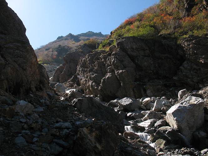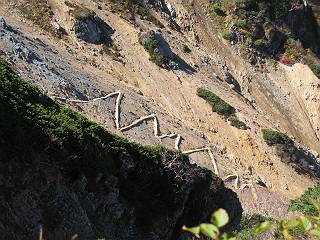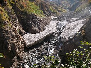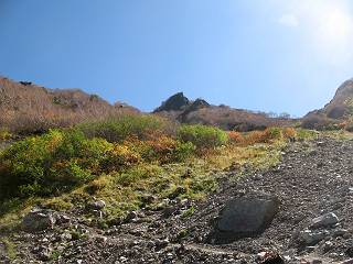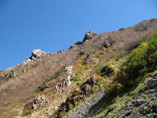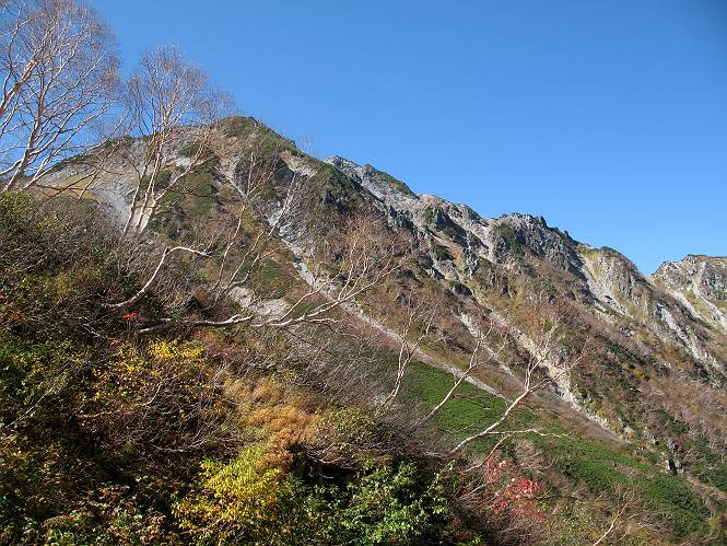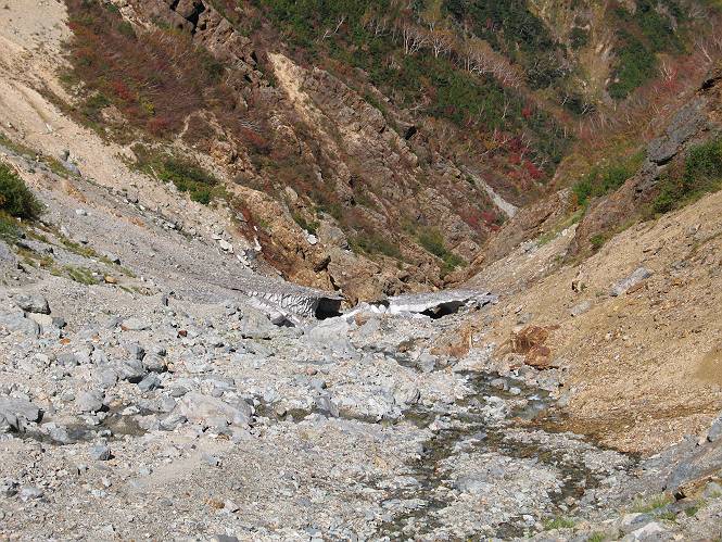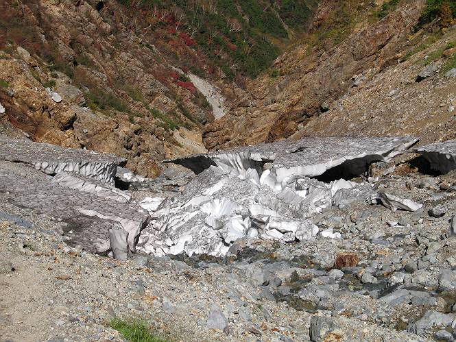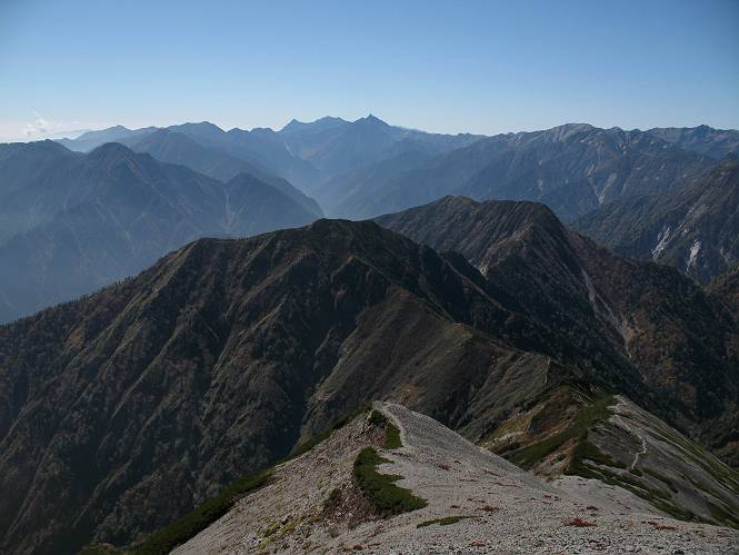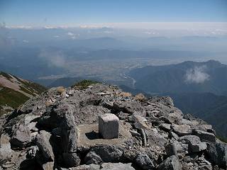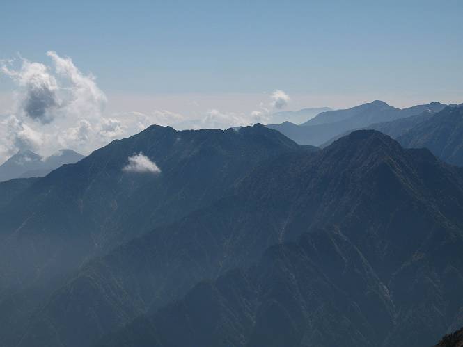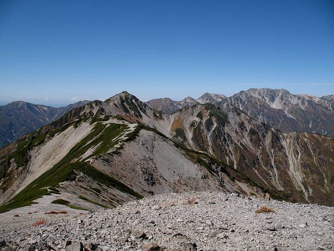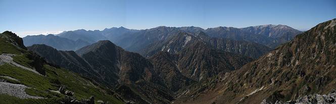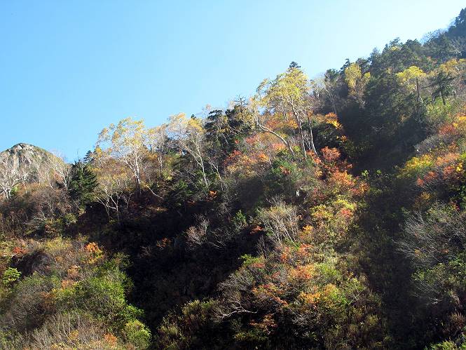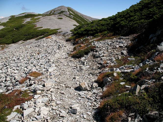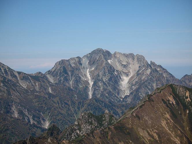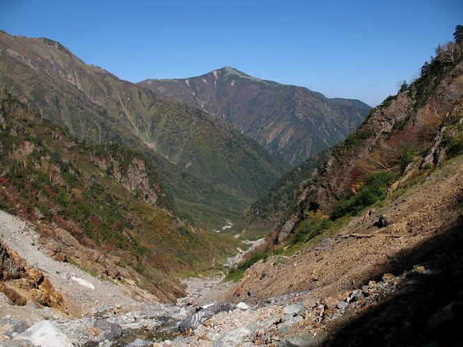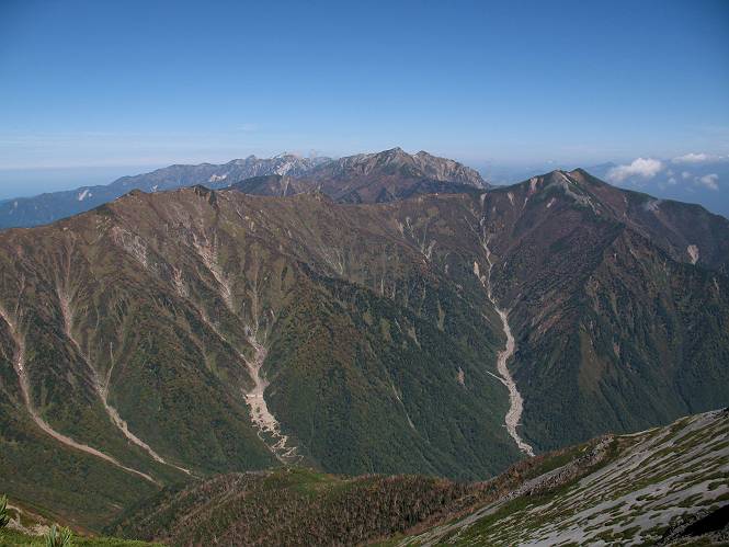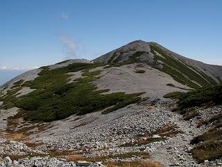 | 【後 編】針ノ木岳→針ノ木峠→蓮華岳→針ノ木峠→扇沢 【前編】へ戻る 山頂を時々振り向き、見渡し、眺望を堪能しながら折り返す。行き交う人も少なく5,6人会って針ノ木峠まで戻る、10:07。ザックをデポして蓮華岳を往復する人もいるようだが、2時間ほどかかるだろうから手ぶらとはいかない。峠から見えるコブを抜けるまでしばし急登であるが、絶景に呼び止められ立ち止まるのでイイ按配だ。この山は、文字通り見る方向によって、蓮華の格好をしているのだろうか。また、それほど距離を隔てず、小蓮華山、三俣蓮華岳がある。周辺の山から見る限り、山頂部の広いズッシリ山体という感じである。 コブを過ぎると緩い笠状に変わり、やれ山頂はもう直ぐだ、となるのだが、まだ早い。緩やかな起伏が続き、礫を踏みながら、尾根歩きを楽しませてくれる。やがて、最奥のピークが顔を出し、石祠のあるピークが、汗ばんだ登山者を迎えてくれる。そのまま辿ると山頂の道標があり、更に東寄りに饅頭型の小ピークがあり、ここに三角点がある、11:04山頂着。 ![]() 左から針ノ木岳、スバリ岳、間に別山、剱岳、赤沢岳、鳴沢岳、間に白馬岳、岩小屋沢岳、後方に鹿島槍ケ岳 コブを過ぎると笠状のピーク 大きな谷を隔てて槍ケ岳 ![]() 左から餓鬼岳、燕岳、大天井岳、前穂高岳、奥穂高岳、槍ケ岳、野口五郎岳、水晶岳、赤牛岳、薬師岳 左から針ノ木岳、スバリ岳、赤沢岳、後方に立山三山、剱岳、鳴沢岳、岩小屋沢岳、爺ケ岳、後方に白馬岳、鹿島槍ケ岳 最奥のピークを正面に見て、緩い起伏の礫の道を進む 最後の登り、石祠が迎えてくれる 礫の斜面をジグザグと 山頂の石祠 山頂の道標、右船窪岳方面 三角点、2798.6m、下は大町市 山頂の眺望は、ほぼ針ノ木岳に近いが、細かいところで趣を異にする。餓鬼岳は近くに、剱岳は遠のいた感じ、爺ケ岳から針ノ木岳の稜線はきれいに横並び、白馬岳右手奥の小蓮華山は、位置的な関係で、ここからは見える。三角点からほぼ東方向尾根伝いにはっきりした道がついている。居合わせた若い男性と地図を広げてみたが、地図にはない知る人ぞ知る道なのだろう、11:30帰路につく。 【蓮華岳山頂の眺望】 餓鬼岳から薬師岳、右手前が針ノ木岳 餓鬼岳、ケンズリ 奥穂高岳、槍ケ岳 西岳、前穂高岳、奥穂高岳、槍ケ岳 野口五郎岳、鷲羽岳、水晶岳 薬師岳 手前が針ノ木岳とスバリ岳、赤沢岳、奥が龍王岳、立山三山、剱岳 手前が針ノ木岳とスバリ岳、奥が龍王岳、浄土山、雄山、別山 左から雄山、大汝山、富士ノ折立、真砂岳、奥一段下がって別山 剱岳 手前が岩小屋沢岳、爺ケ岳、奥が鹿島槍ケ岳、最奥が白馬岳 白馬岳 鹿島槍ケ岳 爺ケ岳 山頂を振り返りながら ゆったりした登山道、チングルマと草紅葉 針ノ木岳、東方向から 針ノ木岳、スバリ岳、右奥は剱岳 下って、12:05針ノ木峠、気になっていた朝の二人が休憩中だった。ゆっくりと針ノ木を往復されたようで、このまま下山するとのことであった。小休止して12:15、同時に下山開始したが、・・・・・。 急斜面に造られた登山道を見下ろし 針ノ木峠に戻る スバリ岳と紅葉の谷を眺めながら下る 峠方向を撮る 下方を撮る、雪渓の上部 左右斜面を眺めながら 崩壊した雪渓 雪渓、巻道から 右岸の登山道 高巻の渡渉点から上方を撮る 同、下方を撮る、正面は爺ケ岳 周辺斜面の紅葉 周辺斜面の紅葉 周辺斜面の紅葉 周辺斜面の紅葉 橋、往路はガレ場を巻いたが渡るのが正規ルート ナナカマドと爺ケ岳 紅葉を見ながら、足元に気を使いながらの沢沿いのコース、谷の上部では大き目な木は葉を落とし低木と草紅葉が目立った。中間でダケカンバだろうか黄葉が綺麗だった。大沢小屋付近まで下ると、ウルシの類だけだった、大沢小屋13:42着。小屋から往路聞いた、ショートカットコースに入る、多少草が覆いかぶさっていたが、足場は良く、直ぐに大きな堰堤の下に出て、橋を渡り、堰堤を乗り越えて、作業道を歩き、トロリーバスの道に出て、ほどなく扇沢駐車場着、14:15。 大沢小屋から堰堤越えのショートカットコース、橋を渡って堰堤を越え作業道に出て道なりに下る 本日の予定コースはここでを終了、総所要時間は9時間30分であった。今回で4回目(1回は峠で引き返す)になる針ノ木岳、晴天に恵まれて素晴らしい眺望、感謝、感謝である。日本の標高ベスト3を同時に見渡せる位置と気象条件、あまりあるまい。残雪期アイゼンを用いて歩くのが楽しいが、今日はザックの奥で眠っていて出番がなかった。紅葉は上部では遅かったのだろう、イマイチ、中間部の斜面は綺麗だった。本コースは距離的に短く、標高差も1600m前後なので日帰り登山が可能であるが、朝の山頂風景は格別だろう、残念。 【前編】へ戻る |