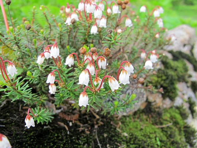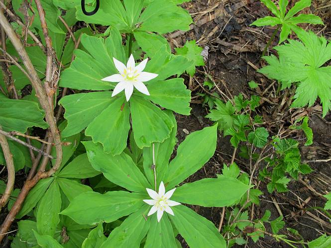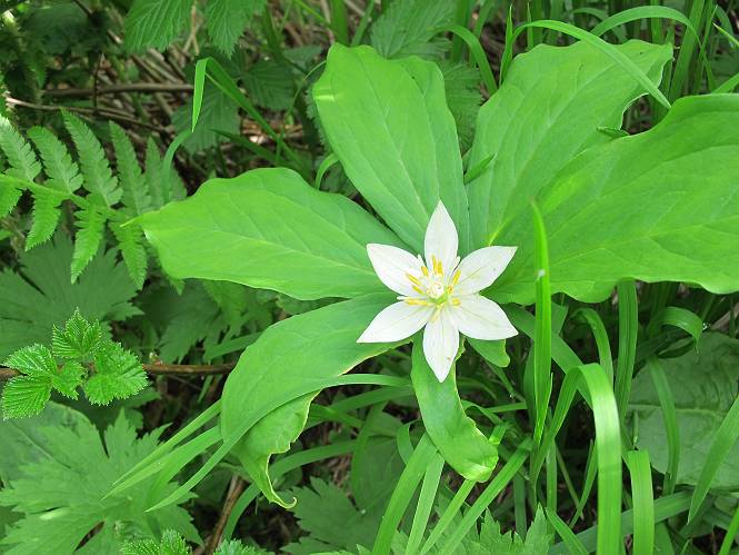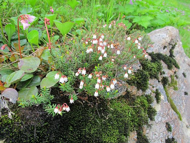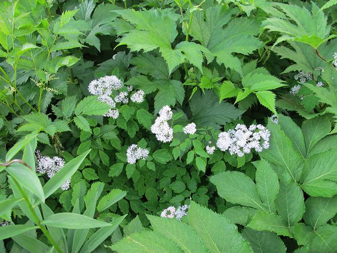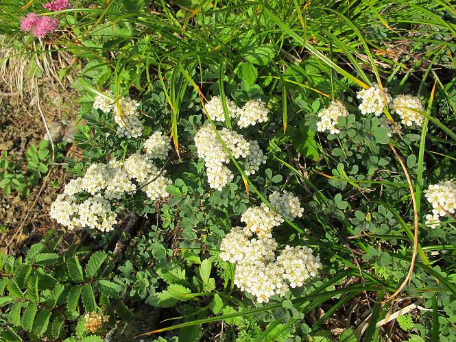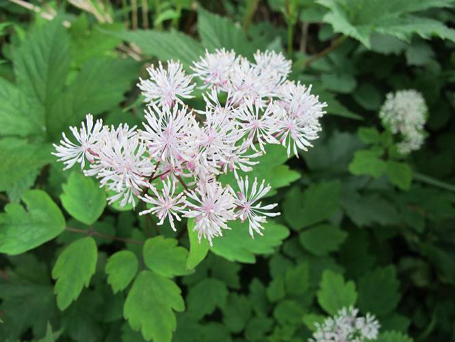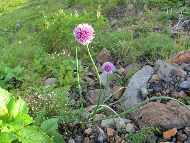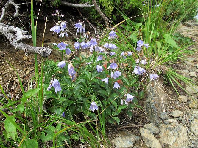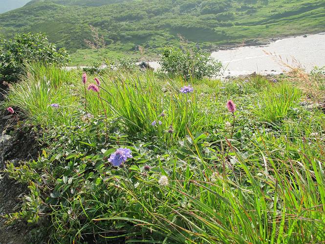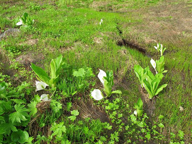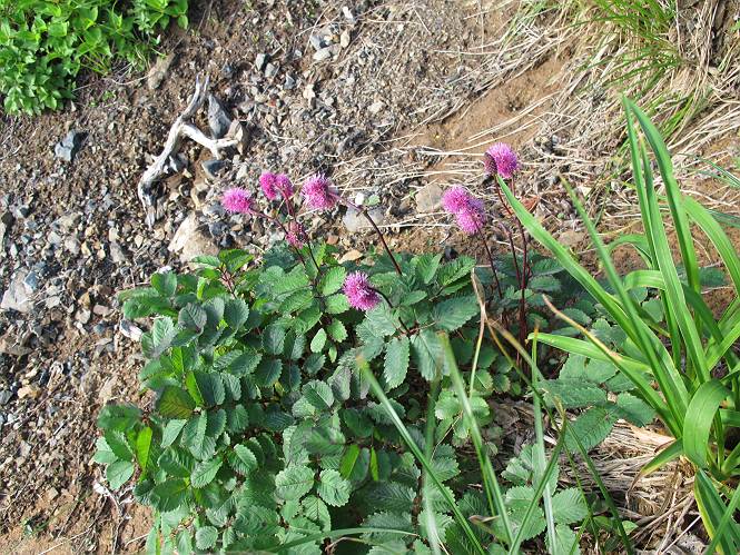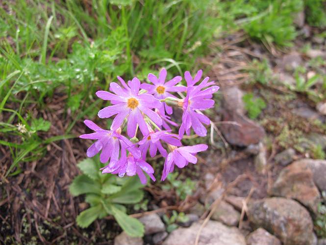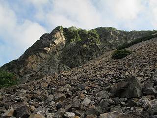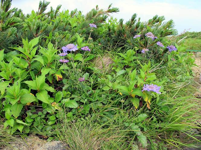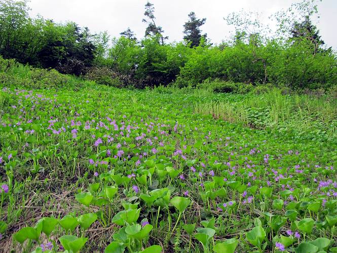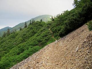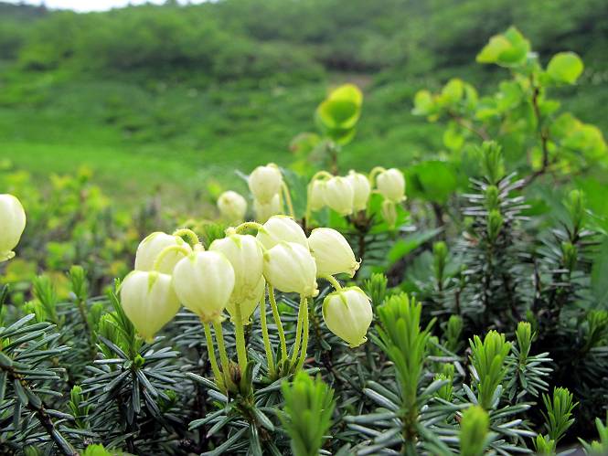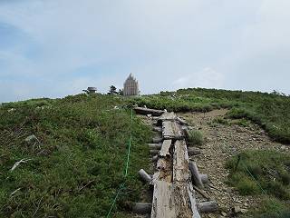 4.雪倉避難小屋⇒朝日岳 5.朝日岳⇒蓮華温泉へ TOP 2.. 3. へ戻る 2日目、夕べは良く眠れなかったなあ。窓越しの夜星を眺めていたが、今日は期待できるぞ、その意気込みは東の暗雲がによって裏切られた、4:57雪倉避難小屋出発。ハイマツの間の小道を進んで行くと薄日がもれてきた。山頂に着く頃には山並も部分的に微笑んでいた。しかし、眺望は昨日とは比較にならない、雨でないだけいいか、5:31雪倉岳着。白馬岳は見えているが、向かう朝日岳には傘雲がかかっている、本日は花見コースだから、・・・・・・。 今日の天気は? 雪倉避難小屋出発 雪倉岳山頂付近から白馬岳 雪倉岳山頂 雪倉岳山頂から傘雲が覆う朝日岳 雪倉岳山頂を振り返りながら赤男山との鞍部まで約600m降下する 道沿いの花々に呼び止められつい、また停まる P2446付近から朝日岳、花に魅せられドッコイショ、ついでに辿るルートを頭の中に 山頂北側のザレた道を下る、道沿いのガレ場にはカライトソウ、タカネマツムシソウ、ハクサンシャジン、ミヤマアズマギクが咲き、雪渓に近い草付にはマルバシモツケ、シモツケソウ、タカネナデシコ、ニッコウキスゲ、タカネアオヤギソウ、ミヤマアキノキリンソウ、シロウマアサツキが咲く、素晴しい北アルプス奥の院という感じだ。大分下って、湿原ぽくなってきた、標高は2400m近いかも、コバイケイソウ、キンコウカ、ミヤマカラマツ、アザミ、ギボウシが群落をつくる、素晴しい光景に興奮気味。深呼吸をして、これから辿るルートを頭の中に叩き込む、道なりに2030m付近まで下り、多分沢を渡って赤男山直下を巻いて水平道に入り、朝日岳西側へ登り、朝日平へ、そして少々上れば朝日岳に出る、大雑把な朝日岳までの道だ、6:44鞍部で小沢を渡る。 鞍部から赤男山 赤男山のツバメ岩 ガレた斜面を横断する 鞍部から緩やかに潅木の中を登り返し、6:54赤男山のツバメ岩の下を巻いて、湿原に出る。シシウド、オタカラコウ、キオン、オトギリソウ、リュウキンカ、ミズバショウ(残り花)が点々とハクサンコザクラ、ハクサンイチゲ、イワイチョウ、チングルマ、コバイケイソウの群落を抜ける。花越しに雪渓の残る山並を見えたが、この天気では残念、7:33水平道分岐。 湿地帯を木道が続く 朝日岳が顔を出す、「お早う」 水平道分岐、右は真っ直ぐ樹林帯を抜け山頂へ 水平道、最初の雪渓 この道は朝日小屋のブログによれば、「7/27開通、アイゼンを持参した方が・・」と書いてあった。そんなわけで軽アイゼンをザックに押し込んできた。ここまでの木道から100m超上っているようだ、キヌガサソウ、ショウジョウバカマ、アカモノ、小さな岩場でツガザクラが、ハクサンコザクラ、コバイケイソウが小群落をつくっていた、ここも素晴しいなあ。雪渓は、ベンガラはまいてあるし(日々変化するので、多少自分なりにとること)全く気にすることなく通過、クサリ場(ここも残雪期の安全上?)を通り、修復した斜面(修復されてなかったら難儀したろう)を抜けて、8:52朝日平合流点、8:58朝日小屋着。 木道沿いの花を観ながら 末期の雪渓を 4ヶ所ほど渡り クサリ場で回りこめば 前朝日、朝日平がドカン! と目の前に 本道の合流点 ニッコウキスゲも見頃でした、色が飛んでしまいましたが 朝日小屋到着、ここの宿泊が予定にあったが 今朝ここまでに会った人は、水平道で一人だけ、小屋周辺も静まり返っている、見えるのは出入する従業員だけ。備え付けの蛇口から美味しい水を頂いて、9:10朝日岳に向かう。朝日平というけれど小さな起伏があり、雪解けも一様ではない。大きな群落をつくっているチングルマにしても一部はヒゲ?状態もあり、蕾みもある、一面に白くなっているところを見ると、今が見頃でしょう。散策をしたいところだが、遊歩道がまだクローズだった、9:17先ほど通った合流点通過。 朝日岳へGO!! 先ほど通った合流点 前朝日、朝日平を振り返る 朝日岳への登り返し、前朝日、朝日小屋 小さな橋、小さなハシゴを伝って、大きな朝日岳の湿原に出る、ハクサンコザクラ、ハクサンイチゲが今は盛り、ムシトリスミレ、アオノツガザクラ、コバイケイソウ、シナノキンバイ、大きな下向いたアザミ、ミヤマタンポポなどなど、その種は数えても数え切れない、10:09朝日岳山頂着。 ちょっと上ると 高層湿原が開ける ハクサンイチゲや ハクサンゴザクラの群生地をながめ 朝日小屋から小一時間で山頂に出る 朝日岳山頂 360°のパノラマを期待したがわずかに白馬岳方面が見えただけだった。 思えば長かった、ひと様に聞いた話から、願望に変り、幾度かの計画も絵に描いた餅に終わり、そして2002年秋の頓挫と数十年の年月がながれた。しかし、歩いてみたい気持ちは変らず、ついにこの頂に立った。取巻く山並は、ソッポを向いているが、機会があったら、またこの道を歩きたい。 雪倉避難小屋⇒朝日岳で出逢った花 【タカネバラ】 【チングルマ】 【ツガザクラ】 【アオノツガザクラ】 【アカモ