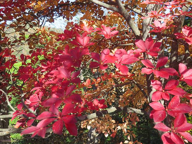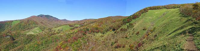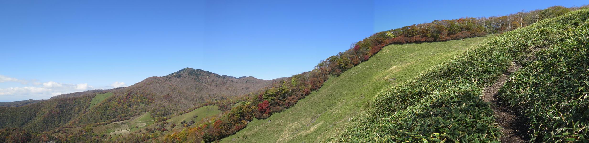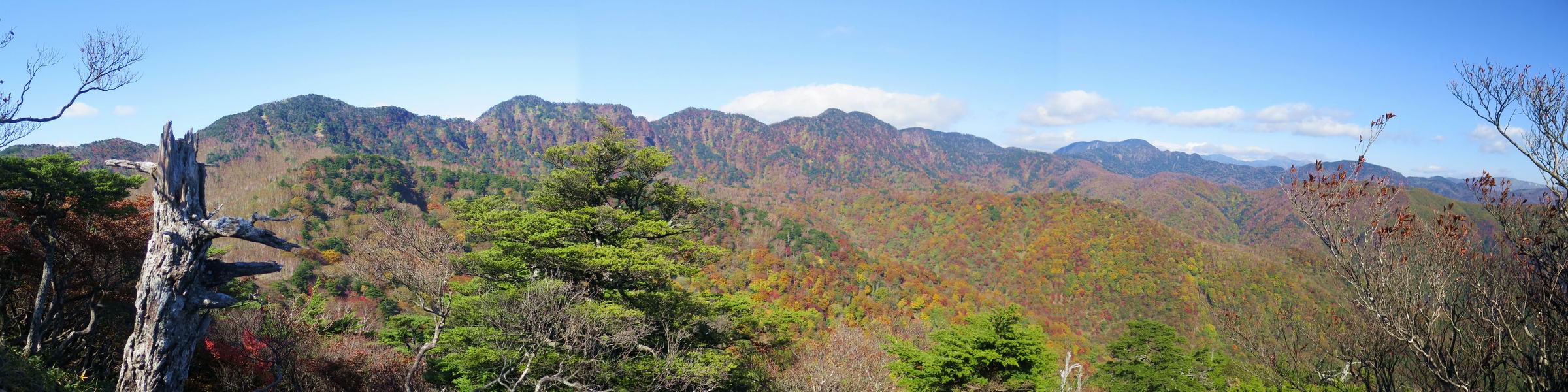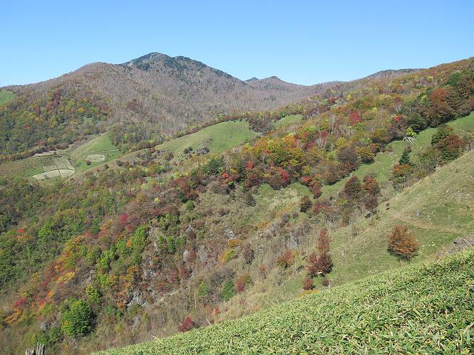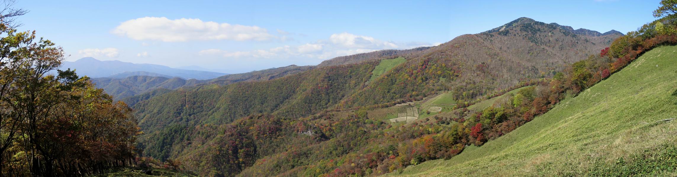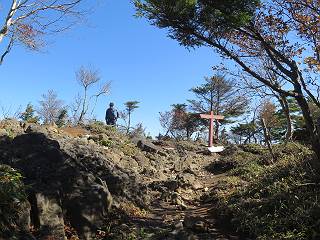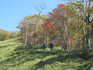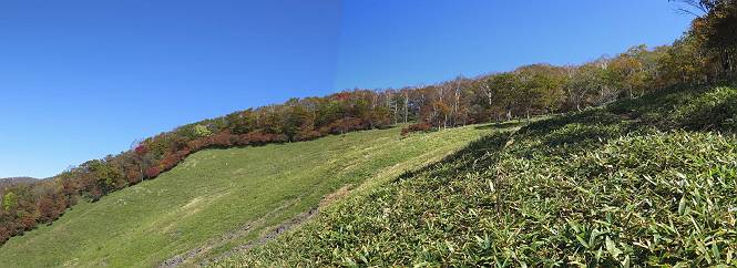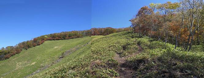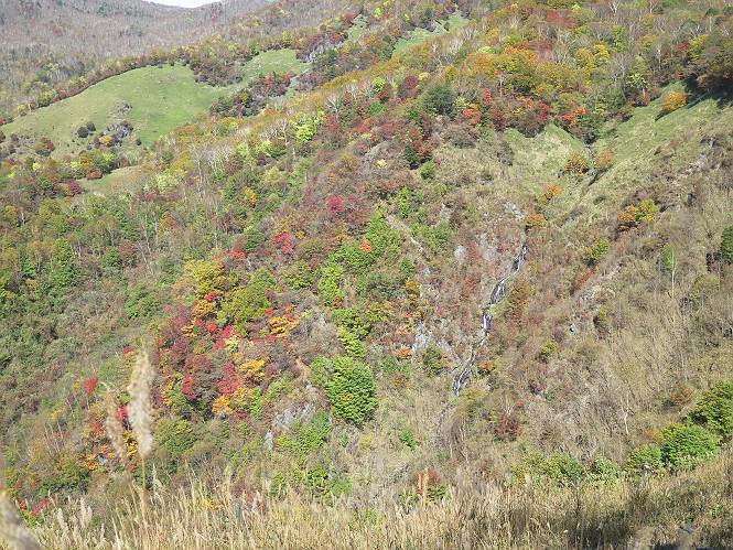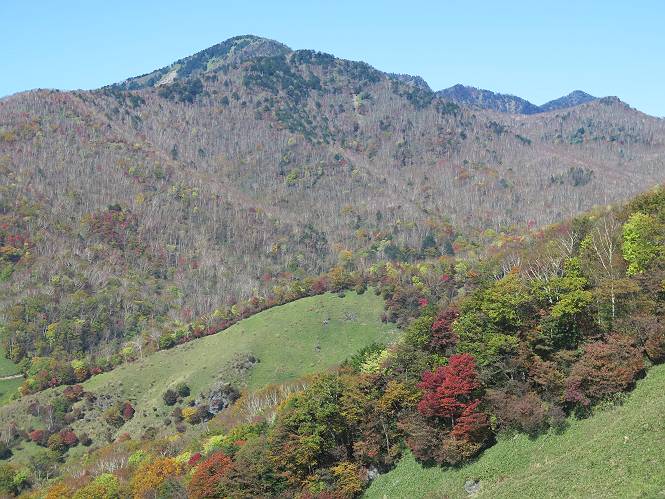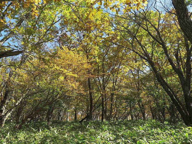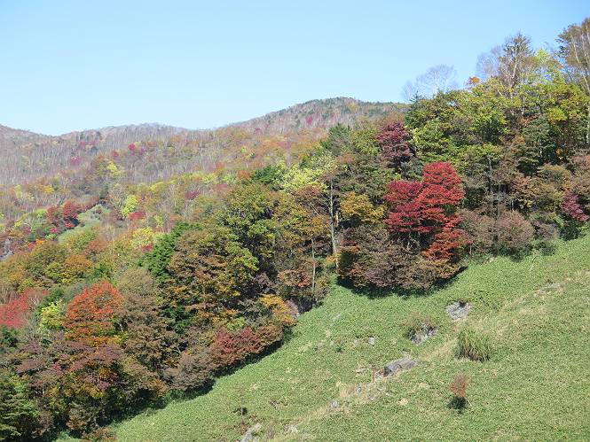 つづき TOPページに戻る 山頂を後に、コメツガの樹林帯を急降下する、上りは足元ばかり気をつかい見落とした紅葉が輝きを増して見える。急降下の最後の所で3番目の方とすれ違う。 ちょっと藪に入って小丸山を撮る、綺麗だ 樹間から左下方に男体山 ツツジ系の紅葉、サラサドウダンかな? 3番目のハイカー 急坂から抜けて、小丸山方向 紅葉を見ながら緩やかに下る 鞍部に出て、軽くアップダウンすると 避難小屋に出る また、谷方向を覘いて、 小丸山山頂へ、深い餅ケ瀬川を覘くハイカーが一人 袈裟丸連峰〜皇海山 画像クリック拡大 袈裟丸連峰、左から前袈裟丸山、後袈裟丸山、中袈裟丸山、奥袈裟丸山、袈裟丸山(最高点) 奥袈裟丸山、袈裟丸山(最高点)、皇海山 後袈裟丸山、中袈裟丸山、奥袈裟丸山、袈裟丸山(最高点) 奥袈裟丸山、袈裟丸山(最高点)、皇海山、奥右に鋸山 餅ケ瀬川筋の紅葉 小丸山で小休止、10:27-10:34、谷を眺めてた若い男性、初めて来られたのか、ビューポイントを問われた、行けたかなあ? ここからは、一気に下り、雨量観測所を越え、11:11賽ノ河原、旧登山道合流点まで、ここでミズナラの黄葉を撮った。条件が良ければ、真っ赤の紅葉するときもあれば、黄葉もある、茶色くなって落ちる場合もある。雑木林から出ると、弓の手の絶景が待っている、秋の陽を一杯に浴び、袈裟丸山を背景に、派生する無数の尾根と谷、南に赤城山構える雄大な眺めだ。コーナーで回り込むと、先に下った男性、ここで休憩していたとか、11:51折場登山口駐車場着。 賽ノ河原付近で 旧登山道の合流点付近 同、ミズナラの黄葉 弓の手の眺望 画像クリック拡大 画像クリック拡大 画像クリック拡大 画像クリック拡大 二人、上って行った、これで今日は6人 コーナーへ 画像クリック拡大 コーナーをまわれば、間もなく折場登山口の駐車樹 総所要時間は、4時間45分、お天気にも恵まれ、あまり期待もしていなかった紅葉、意外や意外、ゆっくり楽しめた。 TOPページに戻る |