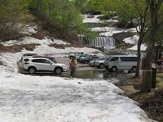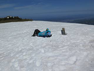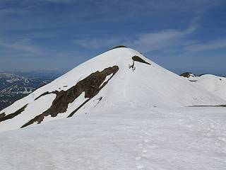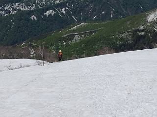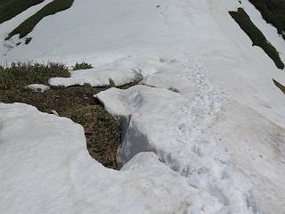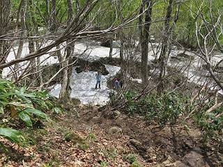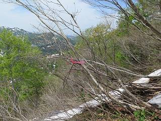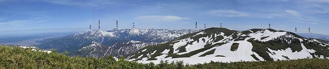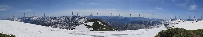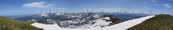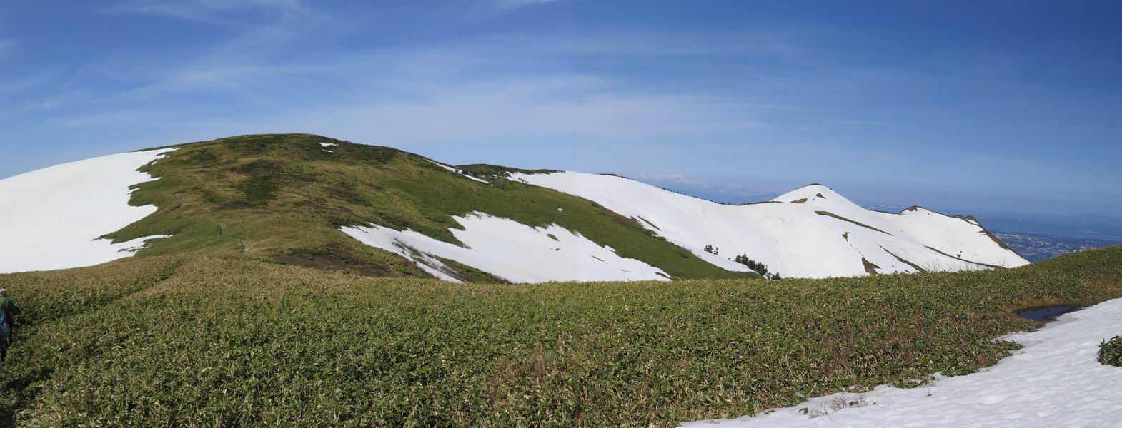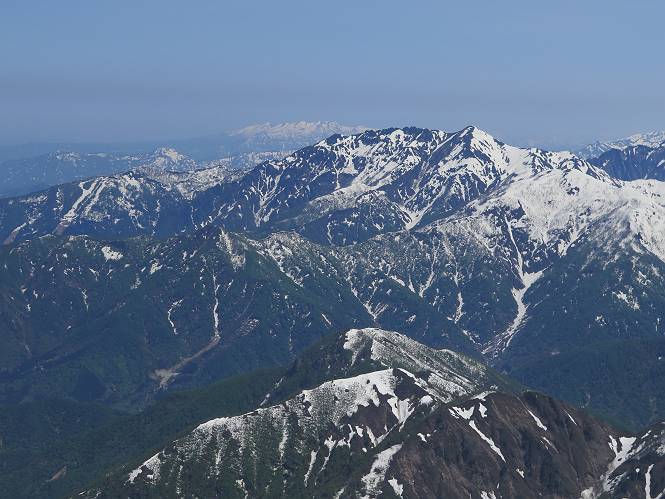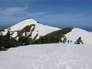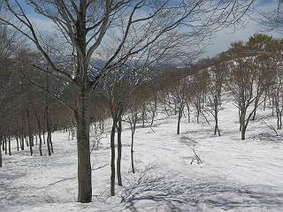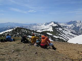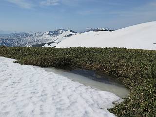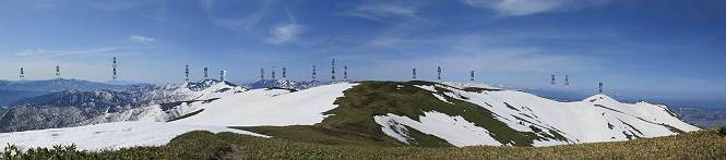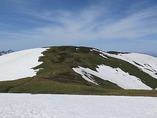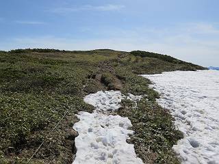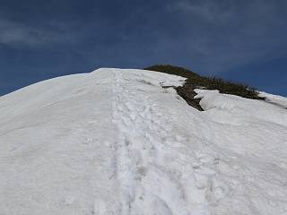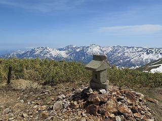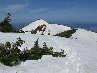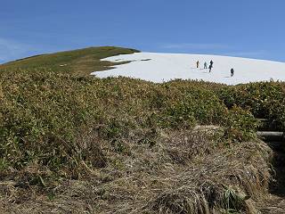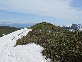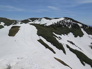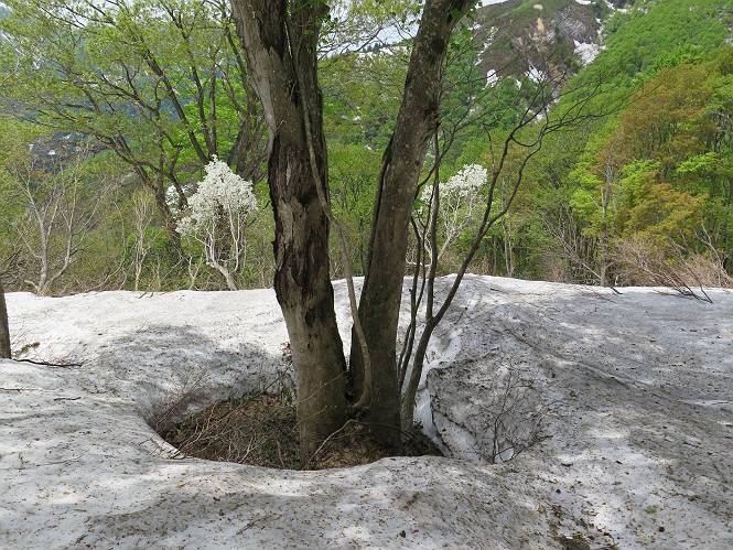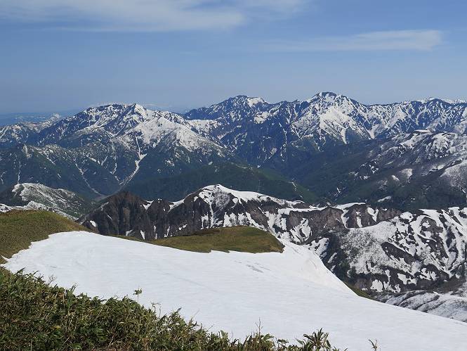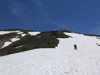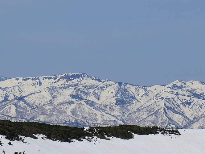 【後編:御機屋⇔牛ケ岳、御機屋⇔割引岳、御機屋⇒桜坂P】 TOPページへ 夏道がほとんど出ている緩やかな尾根道を南方向に進むと最高点付近に石積があり、棒が立っている、巻機山山頂到着である、8:46、一望して牛ケ岳目指して進む。 夏道がほとんど出ている、緩やかな尾根を南進 巻機山山頂、最高点近くに石積あり 巻機山山頂から割引岳 巻機山山頂からの眺望 画像クリック拡大 八海山〜谷川岳〜苗場山 割引岳から巻機山、牛ケ岳の尾根筋は低い笹に被われた高層湿原で、点々と池塘があり、木道から眺めながら歩ける。その夏道も一部雪が残る程度である。緩やかにアップダウンする道を、上越の山並を堪能しながら歩く、ポツンと笹道に三角点がある、牛ケ岳山頂9:08-9:40。眺望を楽しみながら先端を往復、たった一輪、ヒメイチゲの花を見つけた、感動。 牛ケ岳へ向かう、すっかり雪の消えた池塘あり 奥が牛ケ岳 低い笹の間に夏道がほとんど見えている 登山道から燧ケ岳 至仏山、小至仏山、笠ケ岳、奥に日光白根山と錫ケ岳 武尊山、左奥に皇海山 朝日岳、左奥に赤城山 牛ケ岳直下に5人のGr 登山道から巻機山&割引岳 画像クリック拡大 30mほどの残雪を渡りきるまで待っていてくれた直下に見えたGr 間もなく牛ケ岳山頂着 牛ケ岳山頂 画像クリック拡大 八海山〜巻機山 牛ケ岳山頂 画像クリック拡大 八海山〜万太郎山 牛ケ岳山頂 画像クリック拡大 皇海山〜割引岳 妙高山(左)&火打山 苗場山方面 苗場山 谷川岳方面 谷川岳、一ノ倉岳、茂倉岳 左奥に赤城山と朝日岳方面 武尊山方面 至仏山、奥に日光白根山 燧ケ岳 中央奥に会津駒ヶ岳、右に平ケ岳 越後三山、左から八海山、越後駒ヶ岳、中ノ岳 八海山と奥に守門岳 山頂先端で見つけたたった一輪のヒメイチゲ 牛ケ岳を後に、残雪を踏んで、9:54朝日岳分岐点、ここから朝日岳への長いヤブ尾根、期間限定、まだ歩いている人がいるようだ。10:00巻機山、大へん賑わっていたが牛ケ岳に向かいそうな人はいなかった、緩やかに下って、10:09御機屋 帰路は残雪を踏んで・・・ 巻機山に向かって・・・ 朝日岳方面分岐点、ここから長いヤブ尾根の向こうに朝日岳 巻機山山頂、見入る朝日岳&谷川岳(?) 残雪を踏んで 御機屋へ戻る、贅沢な昼寝をする女性あり ここからトレースを辿って割引岳へ向かう。ちょっと進むと戻ってくるハイカーあり、「もう、誰もいない」ようだ。中間の小ピークを越え、登り返すと、山頂直下の雪は複雑に崩壊していたが、もう雪面も晩期で危険は感じなかった、割引岳10:28-10:36。素晴らしい眺望を独り占めし、10:54御機屋に戻る。 ここからトレースを辿って割引岳を往復する 二人戻ってくるハイカーあり 中間の小ピークから御機屋 同、割引岳 ![]() 画像クリック拡大 巻機山と割引岳の間に烏帽子岳〜火打山 直下のトレース 割引岳山頂、一等三角点あり 割引岳山頂の眺望 画像クリック拡大 八海山〜武尊山 八海山、奥は守門岳 越後駒ヶ岳、中ノ岳 割引岳山頂の眺望 画像クリック拡大 巻機山〜苗場山 誰もいない割引岳山頂を後に 御機屋に戻る 巻機山御機屋を後に、向かう力の入る人たちを見ながらスイスイと下る、11:03避難小屋、軽く登り返して、11:11前巻機山。居合わせたオッチャン二人に山名を問われ、ここから抜きつ抜かれつ。11:20八合目、ちょっと夏道を歩き、残雪の急斜面に出る。 避難小屋から、 前巻機山へ 前巻機山を下るオッチャンたち、行き交う上り&下りの人 ゾロゾロ繋がって・・・ 八合目で夏道を少々 ここから急斜面を下る 一気に下り、わずか3,4分でブナの樹林帯へ、テントを右手に見て、間もなく夏道に出て、11:50五合目、大源太山を眺め、またブナ林へ。しかし、ここからのルートは勘所、トレースだらけ、チョコチョコ見えてる夏道、覆いかぶさる木々に阻まれる。怪しい箇所も何度か、12:34二合目、12:40井戸尾根入口、12:43桜坂駐車場着。 オッチャン二人もついてくる あっという間に樹林帯へ ブナの樹林帯を縫って下ると テントには人が・・・ 五合目で夏道から大源太山を仰ぐ・・・ 目印を確認しながら、・・・ トレースだらけで??? 時々夏道を もう大分下って、タムシバが満開 オオカメノキの白い花も新緑のヤブで目立つ 真っ白なタムシバ、ちょっと降りてみよう まだ起きかけた状態で咲いています 花数の多いこと 青空に映えますね、よく見ると1/3ほどしか咲いてないんですね グシャグシャ、ツルツルの夏道を歩き 二合目着、オッチャンたち早いな、着いていた 間もなく井戸尾根入口 駐車場には20台ほど 総所要時間は、7時間55分、ちょっと五合目からの下りは難儀したが、あとは快調に歩けた。この時期の素晴らしい眺望に大満足の一日だった。 TOPページへ |