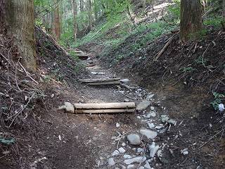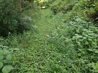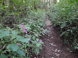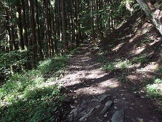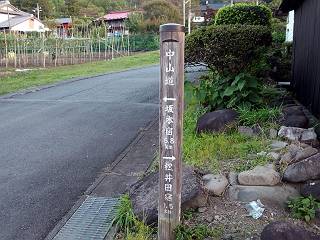 | 第一日目へ 第2日目へ 第3日目へ 第4日目へ 第6日目へ 第五日目 松井田→中軽井沢(沓掛) 9/23(火) 松井田駅から4日目の到着点、“下町”交差点まで戻るのだが、ヘッドランプを忘れたのに気づく。真っ暗な階段を避け、外灯のある車道を下り登り返して4:55“下町”を出発。街灯に照らされた街中を歩く。出外れにさしかかる頃にはすっかり明るくなっていた。“西松井田駅前”を過ぎると旧中山道は信越本線、R18を行ったり来たり迂回の連続、5:18“西松井田駅前”、6:14“御所平”、6:24“小山沢”、6:30“下横川”。 “下町”交差点を出発 ここから松井田宿なのかな? 街並、外灯も煌煌と 家並、時代物かな “西松井田駅前” 家並と妙義山 線路に接近 坂本宿6.8km 裏妙義 丁須の頭が見える 信越本線と向かうA山 第十中山道踏切 R18に接近 “五料”でR18を横断、上は上信越道 旧中山道の家並 高札場跡 坂本宿5.0kmの道標 “五料平”付近で右折して、信越本線横断 石仏を右に左に坂道を上って行く 丁須の頭を眺め、坂道を下る 線路に沿って進み 踏切を渡り、R18“御所平”を横断 小道をちょっと迂回して R18に出る “小山沢”でまたちょっと迂回、入口 出口 R18から左側の風景、背景は妙義山 “下横川”で右折、踏切を渡って、 線路に沿って進めば、6:47横川駅入口、碓氷関所跡に出る、6:53-7:08休憩。R18をかすめて、薬師坂を上り、7:19R18に出る。 線路に沿って進む 坂本宿まで3.0kmの道標 左に横川駅入口 右に碓氷関所東門跡 碓氷関所跡 R18碓氷バイパス、R18現中山道、旧中山道、生活道路が複雑に交差する 旧道は霧積橋を渡り、薬師坂を上る 右手に、奥にあった川久保橋の説明板 坂道の入口に薬師坂の碑 坂の途中に薬師の湧水 R18へ 真っ直ぐに上っていく街道、“原”を過ぎ、7:36下木戸跡、坂本宿にさしかかる。道路は整備され、家並も当時の雰囲気出す造りになっているので興味深い、7:50上木戸跡通過。この先で林道に入り、草道を抜け、R18を横断して、碓氷小屋なる現在の休憩所に出る、小休止7:59-8:03。 こんな風景が目に入ると、そろそろ坂本宿 “原”を過ぎると、坂本宿下木戸跡 坂本宿の現在 佐藤本陣跡 和歌山牧水宿泊の宿のようです 坂本宿上木戸の跡を過ぎると 旧道は山間に入って行きます、林道に入り直ぐに右折、 浄水場のヘンスに沿って進み、 突き当たったら左折して夏草を踏んで進む ここで右折 木段を上って R18を横断すると、碓氷小屋に出る ここから碓氷峠に向かう ここから山間に入り、木々の間を縫って進む。往時を思わせる旧跡が多々あり、感心させられる。標高差は熊の神社と碓氷小屋間がおよそ700m、単なるウォーキングと考えるとちょっとキツイのでは。8:46碓氷坂関所跡(東屋あり)、熊野神社まで残り6.4kmと書かれている。子持山付近、和宮道分岐に出る、安政遠足も和宮道に矢印が向いていた。10分ほど休憩して、左に入り、沢を渡って緩やかに上ると、仁王門跡に出て、和宮道と合流、信濃・上野境の碓氷峠、熊の神社に出る、10:56-11:06。 ちょっと荒れている杉林の中へ ツリフネソウがまだ残ってました 広葉樹の道となり、石ころだらけの道を登って行くと、 小さい柱状節理が露出している 刎石坂というようだ 石垣を右手にカーブ 間もなく下方が開け、眼下に坂本宿 馬頭観音を右手に 栃の実 風穴、冷気でなく暖気が出ていた また杉林に 林中には秋の花が、キバナアキギリ カニコウモリ オクモミジハグマ ここは刎石小屋の跡、石垣が残ってます 碓氷坂の関所跡と書かれてました、熊野神社まで6.4km また広葉樹がしばらく続きます 南向馬頭観音があって カーブして、北向馬頭観音 この辺は地形を利用した一里塚だとか 座頭転がし、甲州街道にもあったな そろそろ熊野神社が近いかな ツリバナの紅葉、実はこれから開きます 入道窪 山中茶屋跡、後の小屋は工事用だった小屋でしょう? 日本人に会わないのにアメリカ人に 1人 また4人、仲間のようです 分岐点、左が旧中山道 沢を渡って 平坦な道を進めば 間もなく仁王門跡 いろいろ石仏やら祠が並んでます 人声の方向に進めば熊野神社、信濃・上野境、碓氷峠到着 ここから舗装された長野県道133号線に沿って、山間を下り、11:22作業道のような道に出る、道なりに下り、11:39県道に合流、祝日でごった返す軽井沢銀座を通り、12:00にX型の交差点、右に入って沓掛(中軽井沢)に向かう。 旧道は舗装道路に沿って山中を下る 平坦な場所もあり道を見失いがち 道標も少なく トラロープが張られた急坂も ここで作業道のような道に出て 広い別荘地の中の道に出ます 道標があったのでOKでしょう 下って行くと 道標が、勿論、旧軽井沢方向です ここから簡易舗装されてました ここで熊野神社からの舗装道路の出ます 道端にはキツリフネが咲いてました 軽井沢銀座と称するところを通り 軽井沢銀座出口(入口) X交差点を右に入ります ロータリーを通って “離山”でR18に出る “離山”でR18に出て、その直ぐ先“軽井沢中学前”を左折しなの鉄道の踏切を渡って