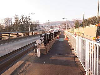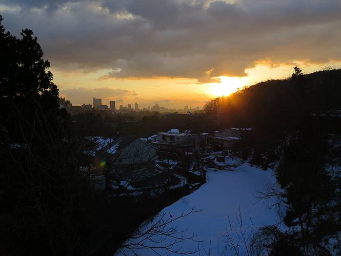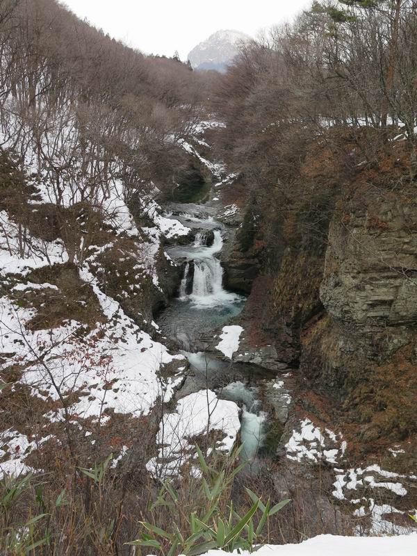 | 5日目:仙台→(作並街道)→作並 ルート図はこちら 26.3km、晴れたり曇ったり、時々雪 TOPページへ戻る 1日目:二本松宿→福島宿 2日目:福島宿→白石宿 3日目:白石宿→岩沼宿 4日目:岩沼宿→仙台宿 6日目:作並温泉→天童温泉 7日目:天童温泉→山寺 旧奥州街道の仙台宿までのウオーキングが終わって、5日目、作並街道まっしぐら、道も雪も心配することはなさそうだ。5:56スタート地点に立つ、6:20作並街道に出る。本日のコースは全体として軽い上り、標高差で265mほど、同じ青葉区奥深く、山形県境に近い。7:04起点から4km地点、7:47道路の混みあう折立交差点、8:15仙山線の愛子(アヤシ)駅入口、9:01作並街道は仙台西道路に合流する。 ホテルをチェックアウトして青葉通を仙台駅方向に 昨日のゴール、青葉通と国分町通(旧奥州街道)交差点を出発する 国分町通 国分町に入る ここは? 朝帰りかな? ここから静かに・・・ 間もなく左折して、作並街道に入る 右手にデッカイ大学病院 その先に国宝大崎八幡宮 道は緩やかな上り、ギリギリの所を歩く ちょっと下が開けて、左に蛇行している広瀬川 朝焼けです@ 朝焼けですA 青葉区八幡六丁目、起点から4km、 7時をまわった、そろそろ通勤かな? 道は広瀬川に沿って 5km過ぎた所で、田園が 広瀬川を渡って、折立交差点へを右折する 直ぐに東北道の下を通る、 ラッシュって感じ、雪の上を歩きます 愛子交番前で、 作並街道は、R457に入ります 少し進むと右手に愛子(アヤシ)駅 その少し先で作並街道は、仙台西道路でて一本に絞られました 9:28仙台から15km地点通過、道路は問題なさそうだ。10:45熊ケ根橋を渡る、10:50仙台から20km地点通過、11:28鳳鳴四十八滝見物、雪のチラつく中なので見応えはなかったが季節によっては良い滝だ。丁度昼時にかかりそうなので寄り込んで食事、温かいのが良いなあ。 仙台の起点から15km通過、 道路情報、関山峠は降雪&凍結だって 雪がチラつき始めました、右手に石碑 ここで秋保方面の道を分けてます 広瀬川を渡ります、熊ケ根橋 下流を橋の上から、褐色の岩場、透き通った流れがキレイ 仙台から20km、 熊ケ根駅前通過 山に近づいてきた感じ、 鳳鳴四十八滝の案内板が、行ってみます このアングルで撮った写真が案内板にありました、後ろの山が鎌倉山 この滝はちょっと上流 ちょっと寄り込んで食事 ウイスキーの工場を過ぎると、道は真っすぐになり、12:48次のカーブで作並駅入口に、次のカーブで広瀬川を渡る。橋の手前に大きなペアーのこけしがある。これを見て、思い出してしまった、30年、いや40年になるかな、会社の慰安旅行で作並温泉に来た、そして宴会の前に釣りをした。釣果はヤマメ一匹、こけし屋さんに寄って大きな一対を求めた、これがまだ部屋に飾ってあるのだ。宴会に遅刻して・・・・・、同行した同僚は早々とこの世を去ってしまった、脱線、御容赦を。 作並川崎入口バス停をすぎると、広瀬川右岸にウイスキーの工場、 正面に先ほど見た鎌倉山(ゴリラ山) ちょっと真っすぐな道があり、 作並駅入口 おお、出てきました大きなこけし、 坂道を上れば 本日のゴールは近い 今晩の宿到着 ちょっと勾配を増して作並温泉に入る、13:20早い到着だった。本日の所要時間は、26.3km、7時間24分、仙台の市街地から郊外山の手へ、広瀬川に沿って景色見ながら、後半はチラつく雪を頂き、今日も上々のウオーキングだった。 TOPページへ戻る 1日目:二本松宿→福島宿 2日目:福島宿→白石宿 3日目:白石宿→岩沼宿 4日目:岩沼宿→仙台宿 6日目:作並温泉→天童温泉 7日目:天童温泉→山寺 |