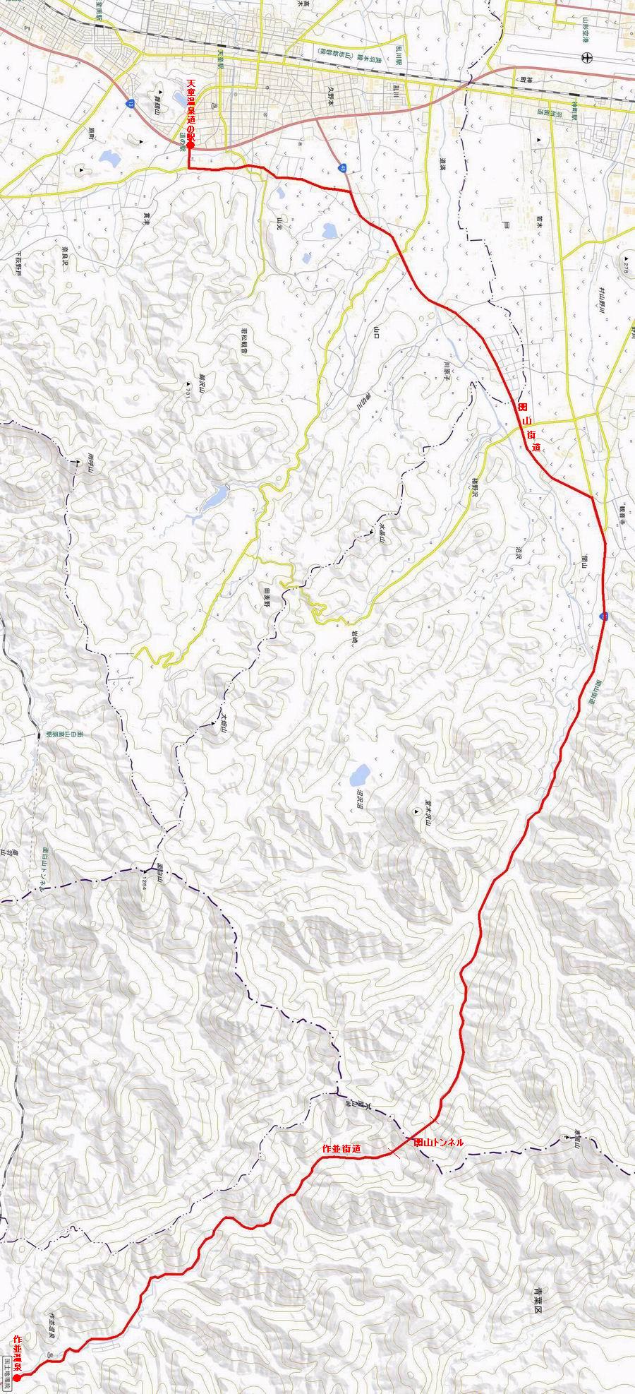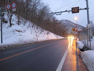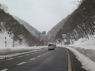 6日目:作並温泉→(作並街道、関山街道)→天童温泉 ルート図はこちら 27.7km、雪が降ったり止んだり TOPページへ戻る 1日目:二本松宿→福島宿 2日目:福島宿→白石宿 3日目:白石宿→岩沼宿 4日目:岩沼宿→仙台宿 5日目:仙台→作並温泉 7日目:天童温泉→山寺 いよいよ今日は、関山峠(トンネル)越えです。計画上一番悩んだ峠道。ここまでは並行して電車が走っていた、新道もあり車が走り、人家が連なっていたので、万一の場合でも簡単にエスケープできた。しかしここだけは難しい、最悪の場合、作並まで戻るか、強行して東根の集落のあるところまで進むか、となる。幸い、今日の天気は降っても、地吹雪にはならないだろう、靴にシュロ縄を巻いて、チラホラ舞う作並街道を進む、5:54。6:06泉橋、6:24除雪センター、6:50仙台から32.4kmポイント、7:13鍋越橋、7:41関山トンネル宮城側通過。作並温泉からの標高差225mはハンデにはらず。ここまで頻繁に通る大型車は、ほとんど避けて通過してくれたが、3台だけ危険を感じて、2回ガードレールの雪に伏せた、1回はクラクションを鳴らされて、雪の中に飛び込んだ。 宿をチェックアウト 昨日の続き、玄関前からスタートだ、夕べの雪が薄っすら、今も・・・ 明るくなってきた、川向うの宿、 泉橋、この辺から先約13km、人家なし 緩いカーブの坂道 気温は−1℃、でも風が少々あり寒い、作並除雪センター 看板「またどうぞ、仙台へ」、ちょっと早いよ、県境まで大分あるよ 作並深沢バス停 広瀬川の流れ@ 広瀬川の流れA 天童26km、仙台から32.4km 監視カメラが点々と、判断するのにライブ情報が役立った 鍋越橋を通過して半時ほど、 関山トンネルに入る トンネル内は風もなく温かい、1km弱の道、10分ちょっとで通り抜けて、山形県に入る。雪じゃ、天候の差が歴然、、気温は−4℃、風は少々、天童温泉まで400mほどの下りだ。順調に下りだしたら、シュロ縄が切れた、でも心配することはない、継げばいいのだ、継ぎ目は靴底から外せば問題ない、2,3分で終わる。カーブを繰り返し、除雪ステーション、ドライブインを過ぎ、関山集落に入る、8:58休石バス停、9:19天童12km標識、9:59東根市猪野沢、間もなく天童市に入る。。 明るくて、温ったかいや、側溝の上うを歩く ここが県境かな? ここは水漏れしているのかな 出口、外は−4℃の表示 山形県東根市に入る、道路名が関山街道に変わる 降りが強くなってきたので、雨具をつける カメラが壊れるのでシャッター控え目 天童20km、距離はあるが下り道 やっと集落に出て、 間もなく休石バス停 それにしても良く降る、でも積もってない 猿が出てきてこんにちは 雪吊り、竹藪、似合うなあ 天童12km 間もなく村山方面分岐、東根市関山 良く降るなあ サクランボのハウス右も左もいっぱい、収穫量はわからないが良く市場があるものよ、山形のサクランボは美味しいのかな。10:16天童市川原子で仙台から51kmのポイント、11:08左折してショートカットし市街地に入る。11:44、天童温泉道の駅に到着。 右も左もサクランボ あれっ、天童に入ってる 天童市川原子、仙台から51km こんな風にして栽培しているんだ 乱川を渡るころ、小降りになった こんな格好で歩いてます、シュロ縄は1回切れてつないでます 画像クリック拡大 仙台から54km、天童市山口で 左折して関山街道をショートカット もうすぐだ、 信号の二つ目の信号を右折天童温泉道の駅に到着 本日の所要時間は、5時間47分、雪に降られたがまあまあの天気、順調に峠越えができた。荷物を整理し、約5kgを宅急便で送り、市中の観光をしてチェックイン。 TOPページへ戻る 1日目:二本松宿→福島宿 2日目:福島宿→白石宿 3日目:白石宿→岩沼宿 4日目:岩沼宿→仙台宿 5日目:仙台→作並温泉 7日目:天童温泉→山寺 |
