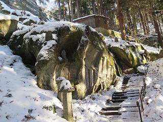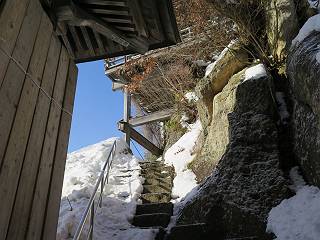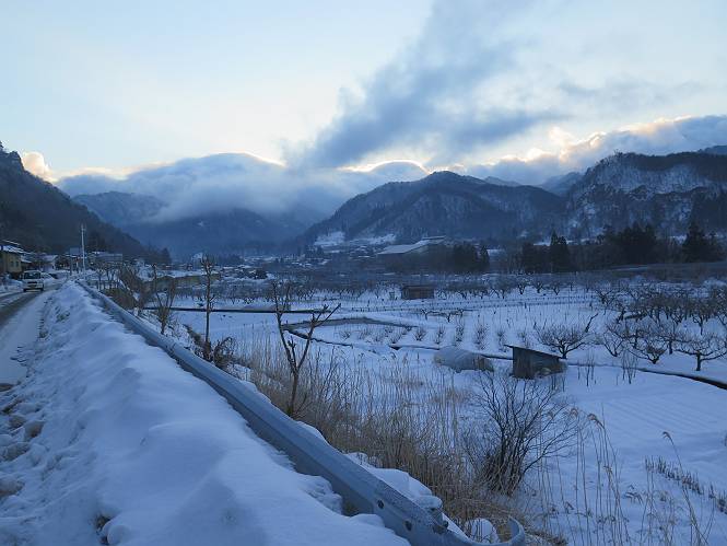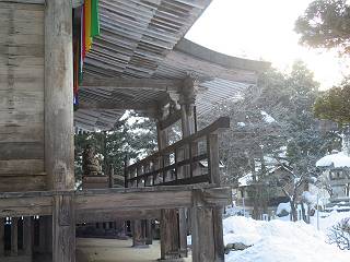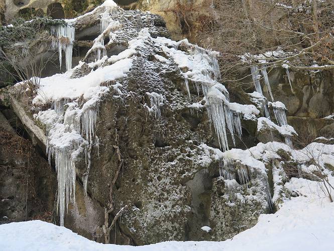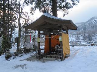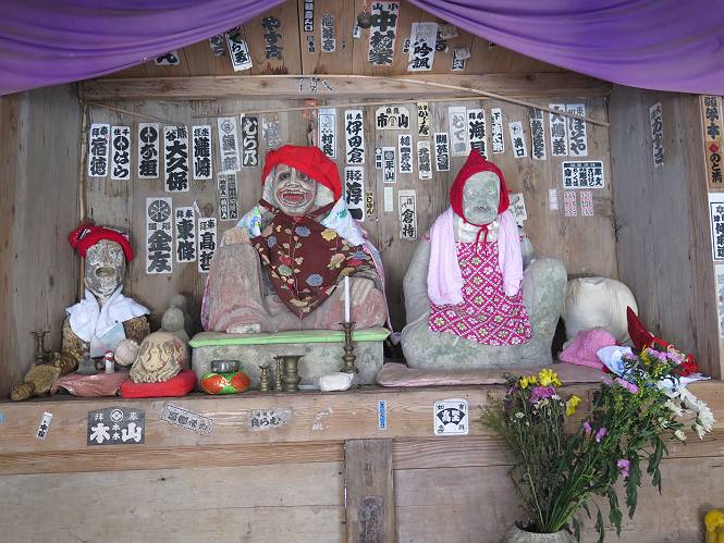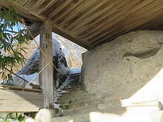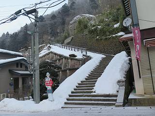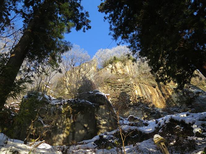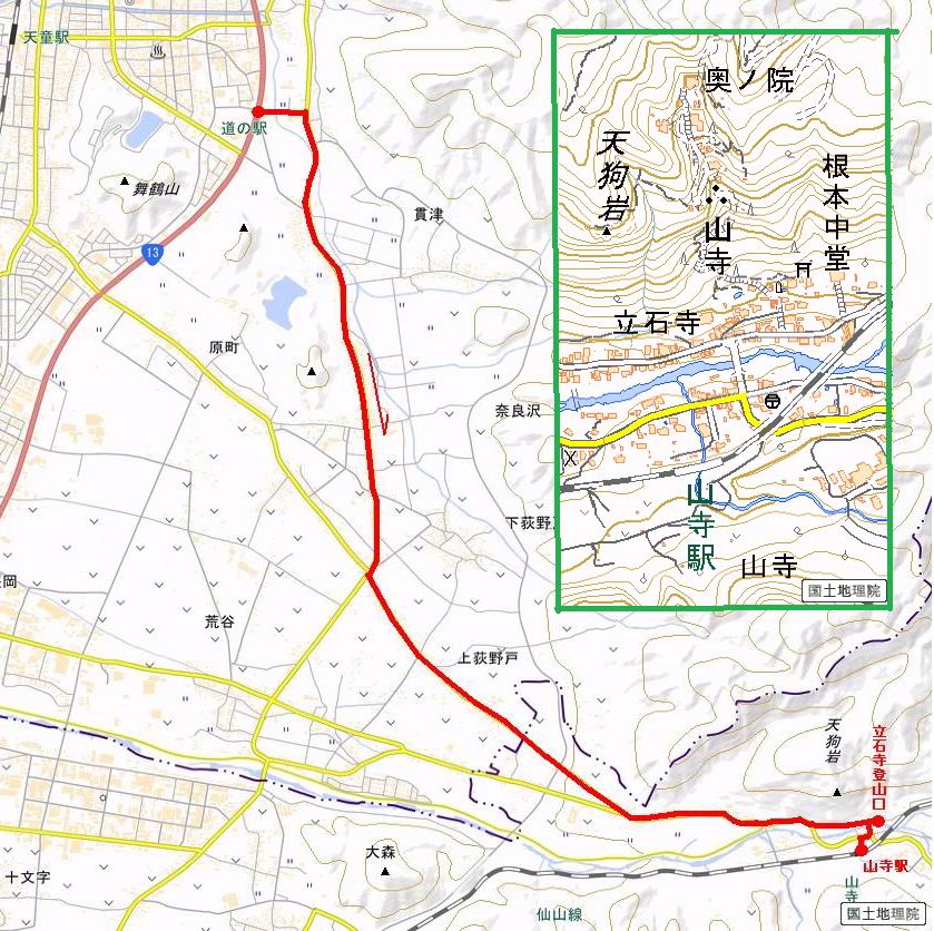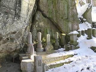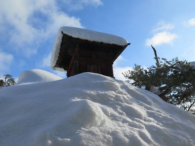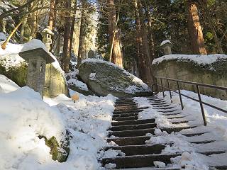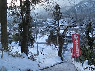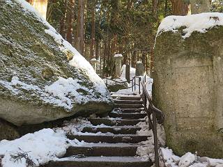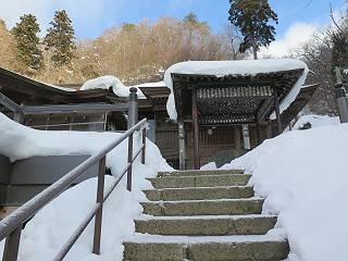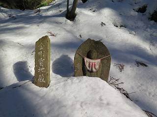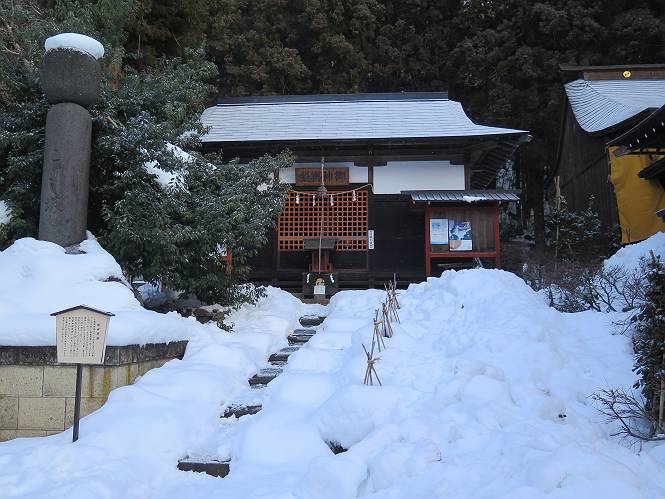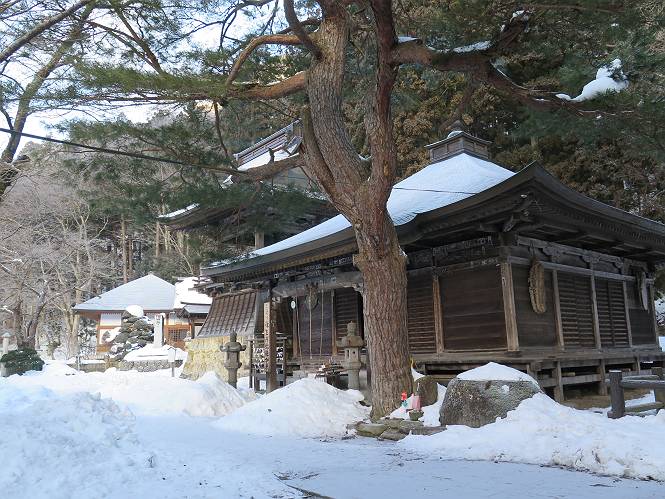 | 7日目:天童温泉→山寺 ルート図はこちら 8.4km、曇りのち晴れ TOPページへ戻る 1日目:二本松宿→福島宿 2日目:福島宿→白石宿 3日目:白石宿→岩沼宿 4日目:岩沼宿→仙台宿 5日目:仙台→作並温泉 6日目:作並温泉→(作並街道、関山街道)→天童温泉 最終日、7日目、いよいよ山寺だ。立石寺の開くのが8:00のようだ、7:30に登山口着とすると、逆算して5:30出発となる。半分送ってしまった軽さで勢いついたのか、歩道で尻もちをついてしまった。簡易スパイクをつけたりして、5:32道の駅出発、5:37津山小角で右折、道なりに進んで6:28山寺街道に入る、道は歩道も車道も凍結状態、交通量が少ないのと簡易スパイクが効いて歩きにくくはない、出発時に雪がチラついていたが止んで、東の空は少し赤く染まっている。7:06県道19号線に合流、こちらも山寺街道、“奥の細道”の角柱、立石寺に近づいている、気温は−5℃、無風、寒さは感じない。山寺の中心部をみながら脚に力が入る、7:26の分岐、左に入って門前を観光、7:40立石寺登山口着。 宿を出て直ぐ、薄っすら積もった歩道の雪にスッテンコロリ、簡易スパイクをつけて道の駅天童を出発 津山小の角を右折、道なりに進む 干布小入口を通過 干布の交差点で左へ、山寺街道(県道111号線)に入る 道はツルツル、テカテカ 大きな枝垂桜と石碑、ゆとりのエリアかな サクランボ畑を左右に南東方向に道なり 山寺に入って県道19号線に合流、山寺街道を東方向に進む 立石寺に近づいてきました、−5℃ですが寒さはあまり感じません 見えているのは山寺の中心部かな ちょっと右を見てます 立石寺は左に 立石寺の下山口 門前の街と駅に通じる橋です 日枝神社の入口、登山口からも回り込める 青空も見える、今日は晴れてくれるのかな? 明け方にかけて降った雪は周辺の山裾を白っぽく染めていた。階段を上がり、正面に根本中堂、前後左右建屋、石碑を見ながら読みながら、撮りながら進む、そして、芭蕉と曾良の銅像&“閑さや・・・”の句碑、念仏堂を見ると、8:00を回っていた、陽も差してきた。 立石寺の登山口 階段を上がると 根本中堂、本堂とも書いてあります 正面にズッシリと布袋様、体を撫でて願い事をお祈りするとか 中堂の外観 進むと左手に御神木のイチョウ、 先ほど下から眺めた日枝神社への階段 日枝神社 日枝神社 日枝神社の前にある亀の甲石 右手に御神神輿殿、 その左に宝物殿 左に芭蕉と曾良の銅像 有名な、“閑さや・・・”の句碑 と、芭蕉 念仏堂 念仏堂の右隣りにある白い仏 巡拝料を投函して、凍った階段を進む、無積雪の立石寺とは違い、足元を気にする。姥堂の傍で4本爪の軽アイゼンに変えて、足元の安全を図る。素晴らしい景色に陶酔の心地、階段を一歩一歩、歴史を肌で感じつつ、仁王門をくぐり、奥の院へと進む。 山門、 「開北霊窟」の額がある、ここで巡拝料¥300、8:00-16:00 無人、帰りは有人だったようです まず、正面階段を上ります 右斜面に石碑などなど 進みます 先方に見えていた石碑 わかりませんが、味がありますね、歴史かな・・・・・、伝わってきますよ 階段を上がって右手に姥堂、説明もありますが・・・、 ここで簡易スパイクを軽アイゼン(4本爪)に変える オッカネェッ! 姥堂の奥にある石碑 右は雪がかいてあり、歩行可能ですが、左は危険 両脇に並ぶ石碑 良い顔してるね 石碑の間を上がって行きます 御手掛岩だそうです 登山口から270段、奥の院まで730段と書いてあります 静寂、差し込む陽が何とも言えないですね、温かみかなあ? 凝灰岩の崖と着雪 凝灰岩の崖と着雪 凝灰岩の崖と着雪 石碑の間を行く 凝灰岩にはいろいろ刻まれているのですが、・・・ 説明書きもありました、長くなるので・・・ これは仏像が刻まれているようです 据えられた仏像 正面の岩にも、板碑型の供養碑などがいっぱい彫られてます せみ塚、芭蕉の句を書いた短冊を埋めて石の塚としたようです まだまだ、階段は続きます 弥陀洞と書いてあります 周辺には石碑が沢山 すれ違った方、滑ったようです、気をつけないと危ないですよ 仁王門が左上に 仁王門 仁王門 仁王門 岩場にはツララが 奥の院は雪囲いがあり、チラッとしか見えなかった、ちょっと戻って五大堂へと進む。ここも開山堂は雪囲いの中、五大堂で展望する。立石寺と見渡す雪の山寺の街、夢にまで見たその光景、いつまでも見入ってしまった。 この上が奥の院です 奥の院、雪囲いがありまして 奥の院 奥の院正面の額 「霊鷲道場」の額 雪囲いのある左側の建物、大仏殿 下りながら前方上を見てます 左上が納経堂、中央が開山堂、右奥が五大堂です 開山堂が雪をかぶった木で見えにくいですが、きれいでした ちょっと下から開山堂に向かいます、 正面が開山堂です ここも雪除けがありまして、左が納経堂、右が開山堂です 手前右の石碑 開山堂の正面です 納経堂です 開山堂付近から眺める立石寺です 開山堂の脇を上って、 間から開山堂を見てます もうちょっと上って 五大堂、宝珠