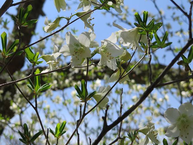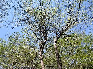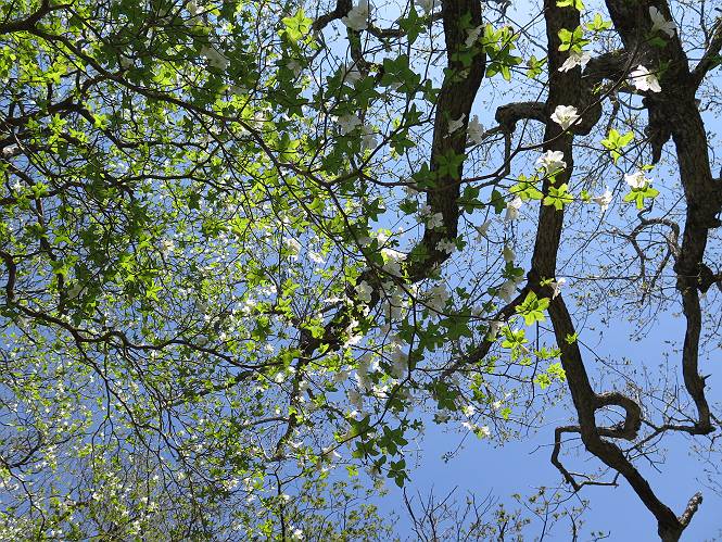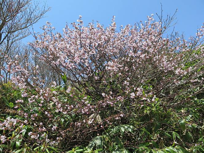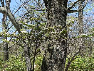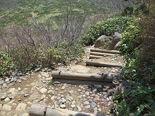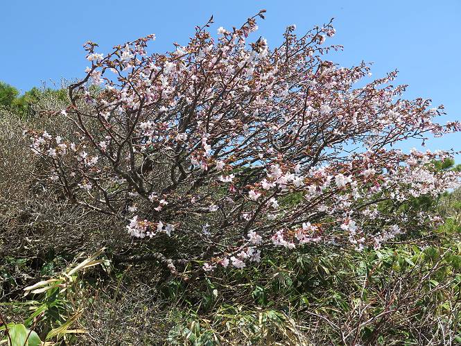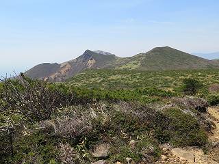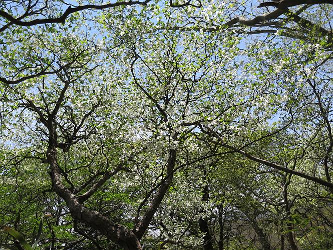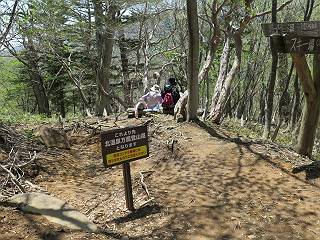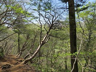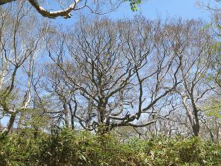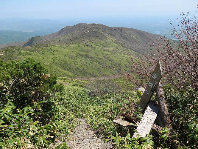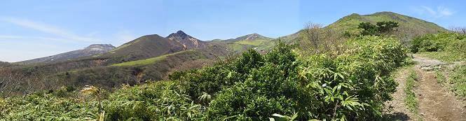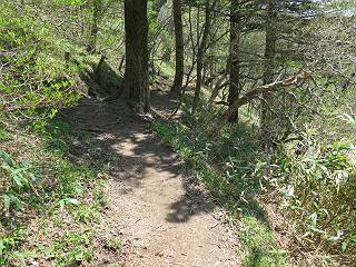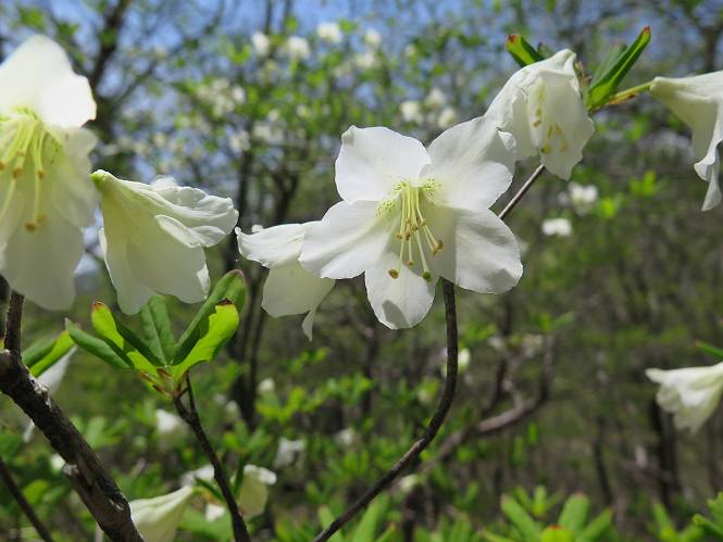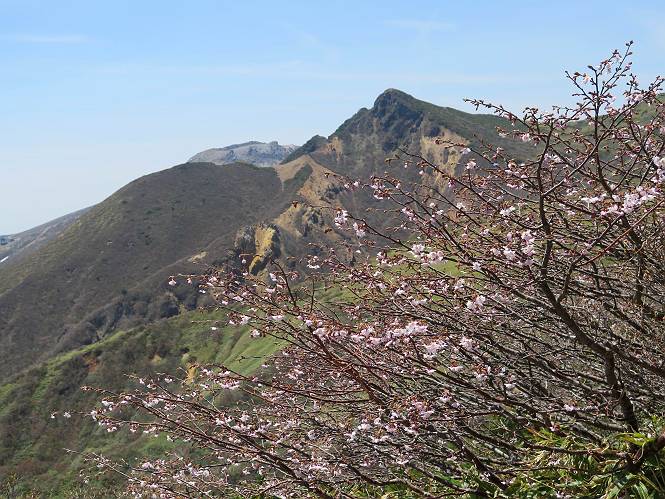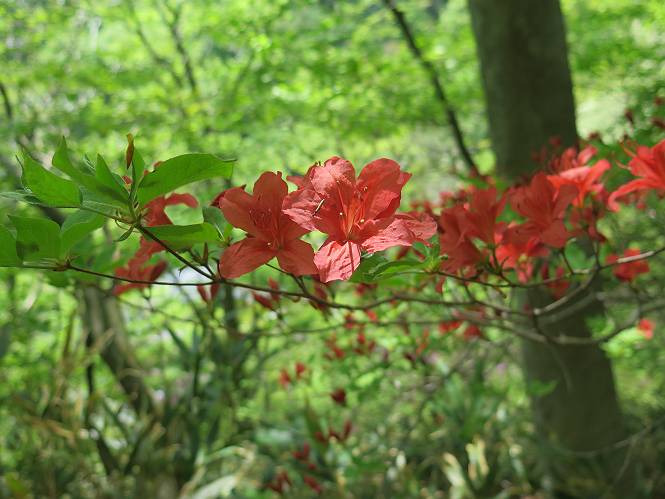 【後編:三本槍岳⇒北温泉⇒大丸温泉P】 【前編:大丸温泉⇒飯盛温泉跡⇒三本槍岳】 下って、10:46北温泉分岐、緩やかに上って、中の大倉尾根に出る。ミネザクラを見ながら少し進み、11:00赤面山への道を分ける。ここからは長い一直線の尾根下り、花を見ながら、那須連峰を眺めながら、砂利篭(蛇篭:鉄線を用いた篭を作り、砕石を詰め込んだもの、河川の護岸工事等に用いる)に足をとられないように進む。11:44、ゴンドラ分岐点、ここから中の大倉尾根から外れ、尾根下の遊歩道を進む。 三本槍岳を後に、 山頂部を下ると 左手に、1880mのピークとその中腹〜上の方に通じる登山道が見える、中の大倉尾根はここから派生している 鞍部から少々登り返し、 北温泉分岐点(標高点1856m) ここから少し上がって、朝日岳を右手に見ながら、 中の大倉尾根の下りとなる 比較的暖かいのか、ミネザクラが登山道沿いに点々と咲いていた 赤面山分岐点から赤面山、この辺からしばらく蛇篭の坂道 ![]() 分岐点付近から、ミネザクラと朝日岳 画像クリック拡大 同、ミネザクラと朝日岳 足場の悪い坂道を下ると、アズマシャクナゲが点々と、 アズマシャクナゲと朝日岳 アズマシャクナゲと朝日岳 アズマシャクナゲと朝日岳 勾配が緩やかになって、北温泉まで3.8kmの道標 脇に那須連山の案内板 ![]() 付近の眺望 画像クリック拡大 左から茶臼岳、鬼面山、朝日岳、清水平 鬼面山と朝日岳、中の大倉尾根と鬼面山の間に毘沙門沢(余笹川源流)が流れている 間もなく樹林帯に入る ここまで下ると芽吹きが始まっている ブナの根元にオオカメノキが咲く ゴンドラ分岐点、ここから中の大倉尾根から外れ、 尾根下の遊歩道を進む ここでも期待していたシロヤシオは急斜面の林中に、道沿いはこれからだ。15分ばかり進んで、下のゴンドラ分岐点を過ぎると、シロヤシオが開花していた。下るにつれて、ミツバツツジ、ヤマツツジも加わり、色濃くなる緑の中で共演していた、12:38北温泉、12:45北湯駐車場、路上歩きを3kmほど、13:13出発点の大丸駐車場着。 緑が徐々に濃さを増し、シロヤシオの花が樹林帯に目立ってくる 遊歩道に面した場所はこれから開花 下のゴンドラ分岐 休憩する散策者 その先で、突然シロヤシオの大木、背景に茶臼岳 高度が下がり、道沿いにシロヤシオが出現する 緩やかな道は突き当たって、 右手に曲がり、急坂となる ミツバツツジが点々と 緑に映えるミツバツツジ ヤマツツジ、シロヤシオ、ミツバツツジの共演 この辺のヤマツツジは蕾が多い 緑の中で際立つ赤 板橋を渡り、 余笹川を渡って、 段をちょっと上がれば 北湯駐車場へ通じる道 3kmほど歩き、 脇道を抜ければ出発点の駐車場 総所要時間は、8時間13分、早すぎた花見ハイクだった、あと1週間先になるのだろうか。那須連峰を縦走しながらもう一度歩きたいが、今年は? 参考: 2012/6/2 黒尾谷岳・南月山・日の出平・三本槍岳 【前編:大丸温泉⇒飯盛温泉跡⇒三本槍岳】 |